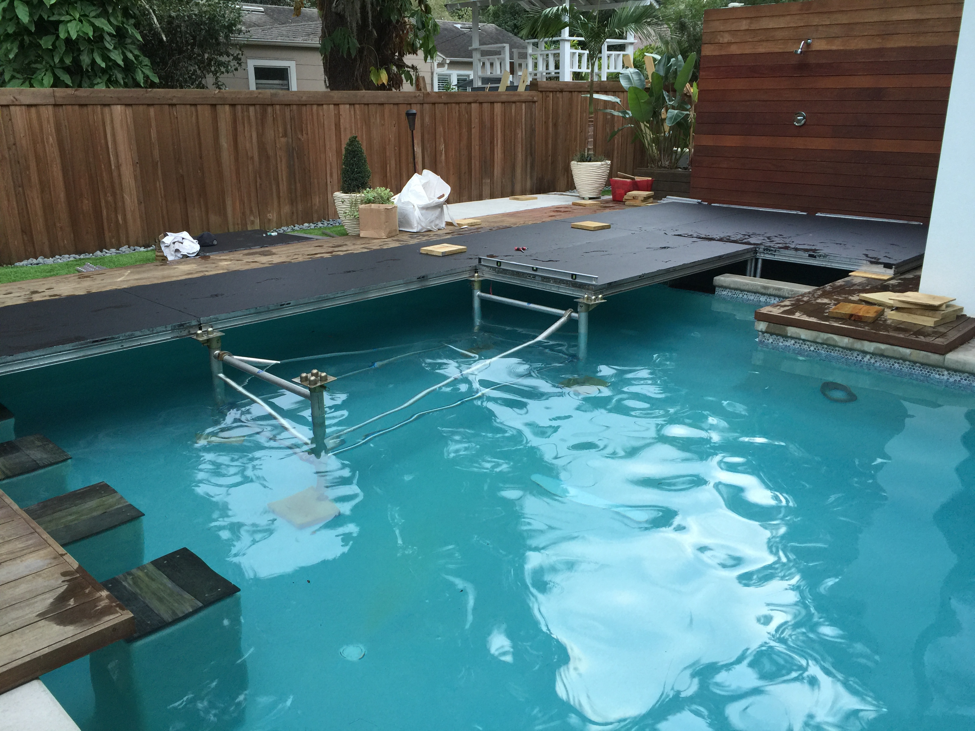 Stages Plus provides pool covers to increase the size of your back yard or hotel patio area. Send us pictures of your pool along with approximate measurements and we can determine (before site visit) if we can cover your pool with our stage decking. Depending on the information provided, we may not have to do a site visit.